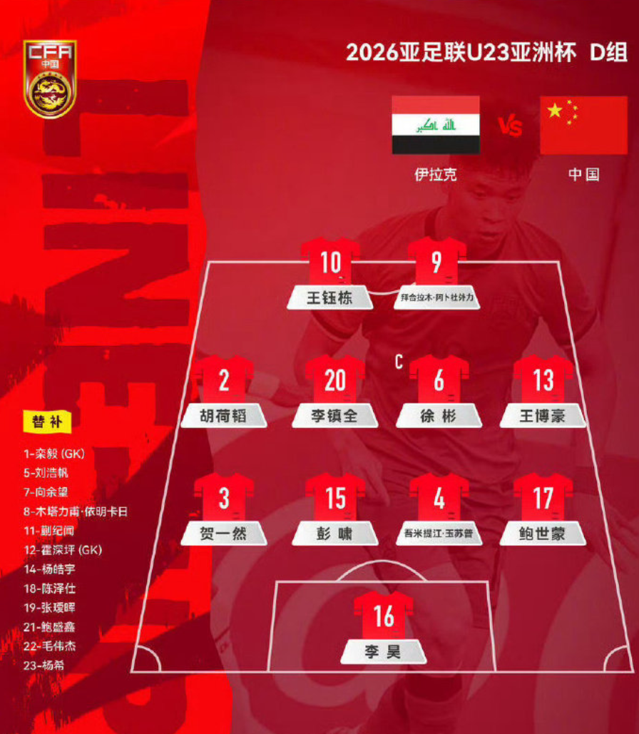 北京时间2026年1月8日晚,U23亚洲杯小组赛首轮的比赛继续进行,中国U23迎战伊拉克U23。上半场的比赛,国足在前20分钟发挥一般,比较保守。但到了20分钟以后,国足前场的两个边路开始发威,尤其是王钰栋的发挥极为出色。同时也在对方门前创造了至少2次绝佳机会,但可惜一次头球顶偏,一次“打了飞机”。最终在上半场,两队战成0-0平。值得一提的是,鲍世豪在开场9分钟后就伤退离场。